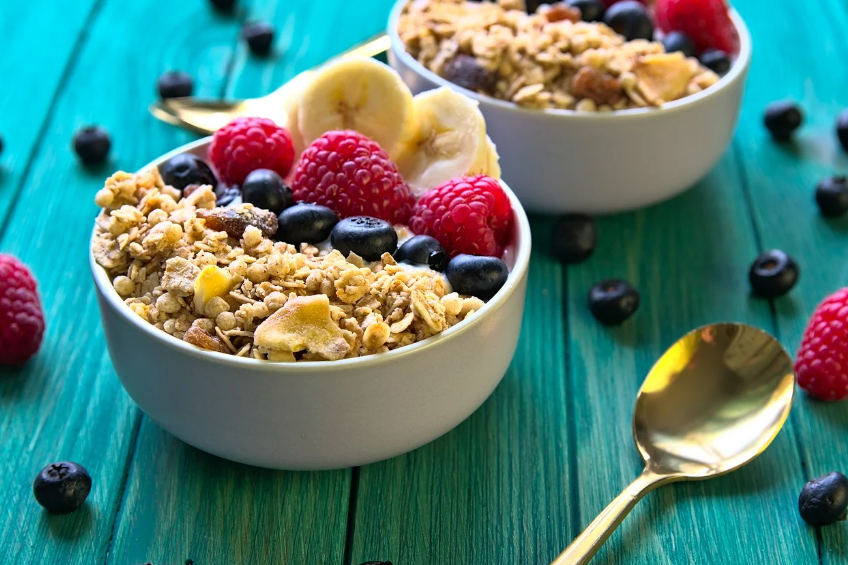 - 재료: 그릭 요거트, 꿀 한 스푼, 블루베리, 그래놀라.