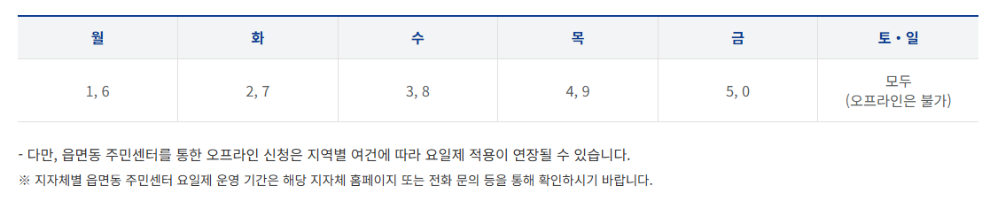 온라인 • 오프라인 신청 모두 시행 첫 주(7.21-7.25)에는 원활한 신청을 위해 '요일제'를 적용합니다.